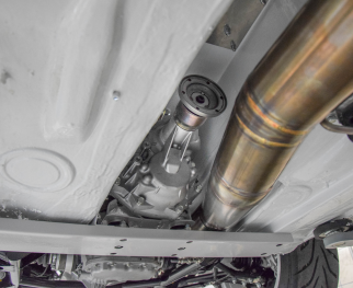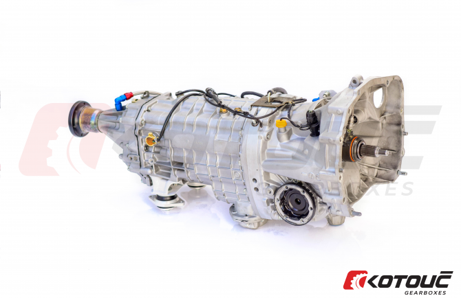 Оригинальная коробка Audi 01E заменяется усиленной 6-ступенчатой коробкой Subaru STI. В корпус STI устанавливается секвентальный набор Kotouc Gearboxes R4, а также поставляются фланец двигателя, шарниры полуосей (ШРУСы) и задний выходной фланец для сборки с оригинальными деталями. Специализированные промежуточные шестерни также входят в комплект с новым передаточным числом.